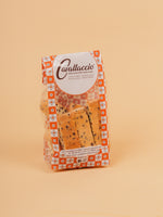 I Cantuccini al Cioccolato uniscono la tradizione dei biscotti secchi all’intensità del cioccolato fondente. L’impasto croccante racchiude gocce ricche e aromatiche, che rendono ogni morso goloso e irresistibile. Perfetti per chi ama i biscotti semplici ma pieni di carattere, ideali da gustare con latte, caffè o una tisana calda.
