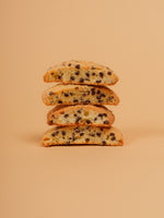 Croccanti, profumati e arricchiti da gocce di cioccolato fondente.